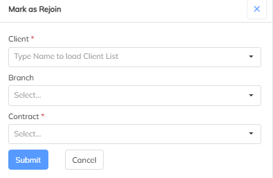 Employee Rejoin as process in staffing, Once an employee resigns/terminated in client and same employee is rejoin with same client or in another client in staffing with Rejoin process.