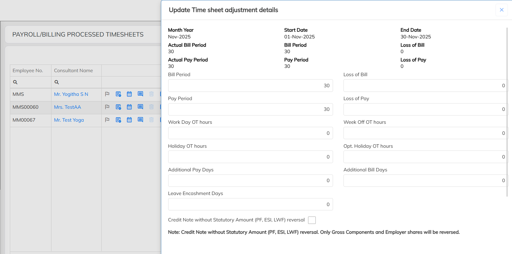 - Income Tax Override to the Employee with excess deducted amount in Negative for the respective Time Sheet Month.