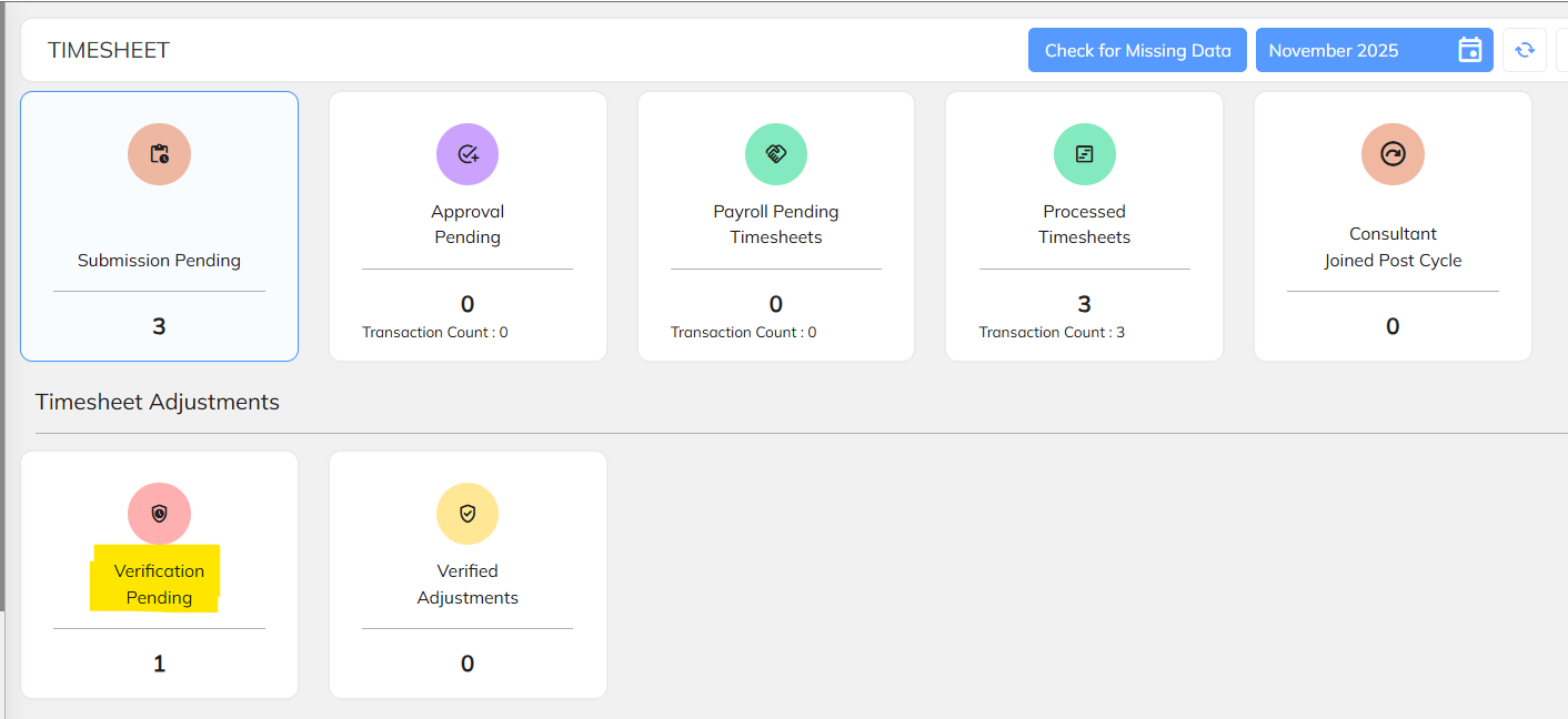 Post approving the Time Sheet Adjustment, Navigate to Payroll Pending Adjustments