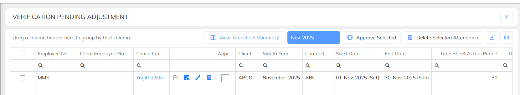 Time Sheet Adjustment: