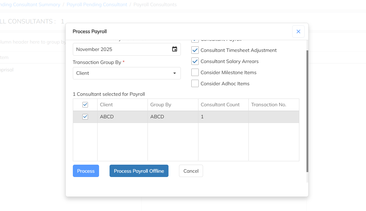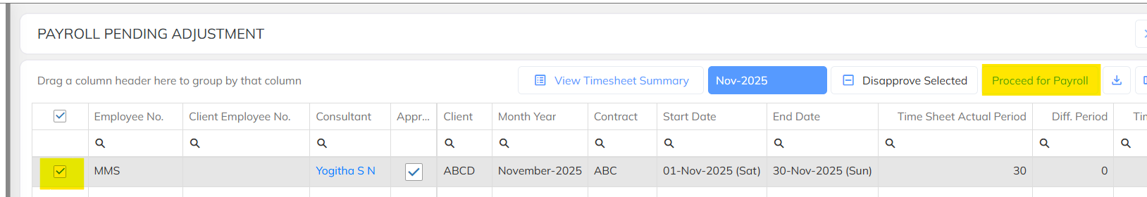 Process the Payroll with "Consultant Timesheet Adjustment"