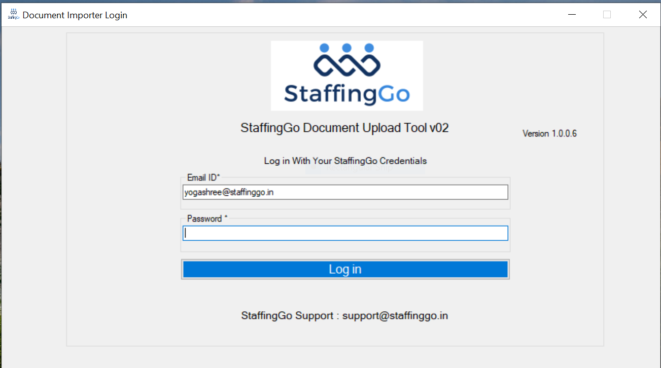 2. Login the Tool with using StaffingGo core application login credentials.