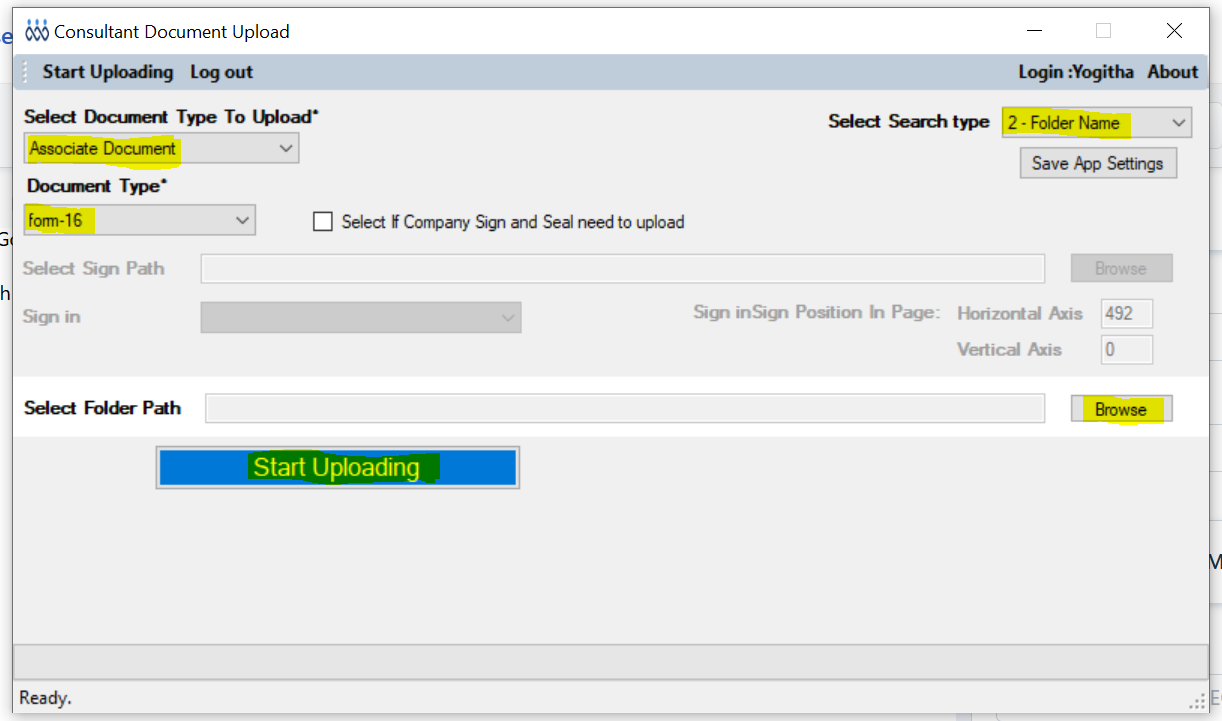 - Select Search type as Folder Name - All employee Form-16 documents need to store in one folder with Name as Form-16 ( Same as document Type Name)