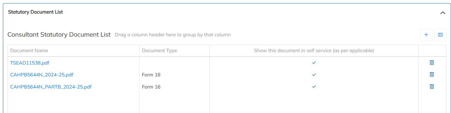 5. All uploaded documents are available under each employee HR details >> Statutory documents list option. Same Form-16 documents are available in the Employee portal for refernece.