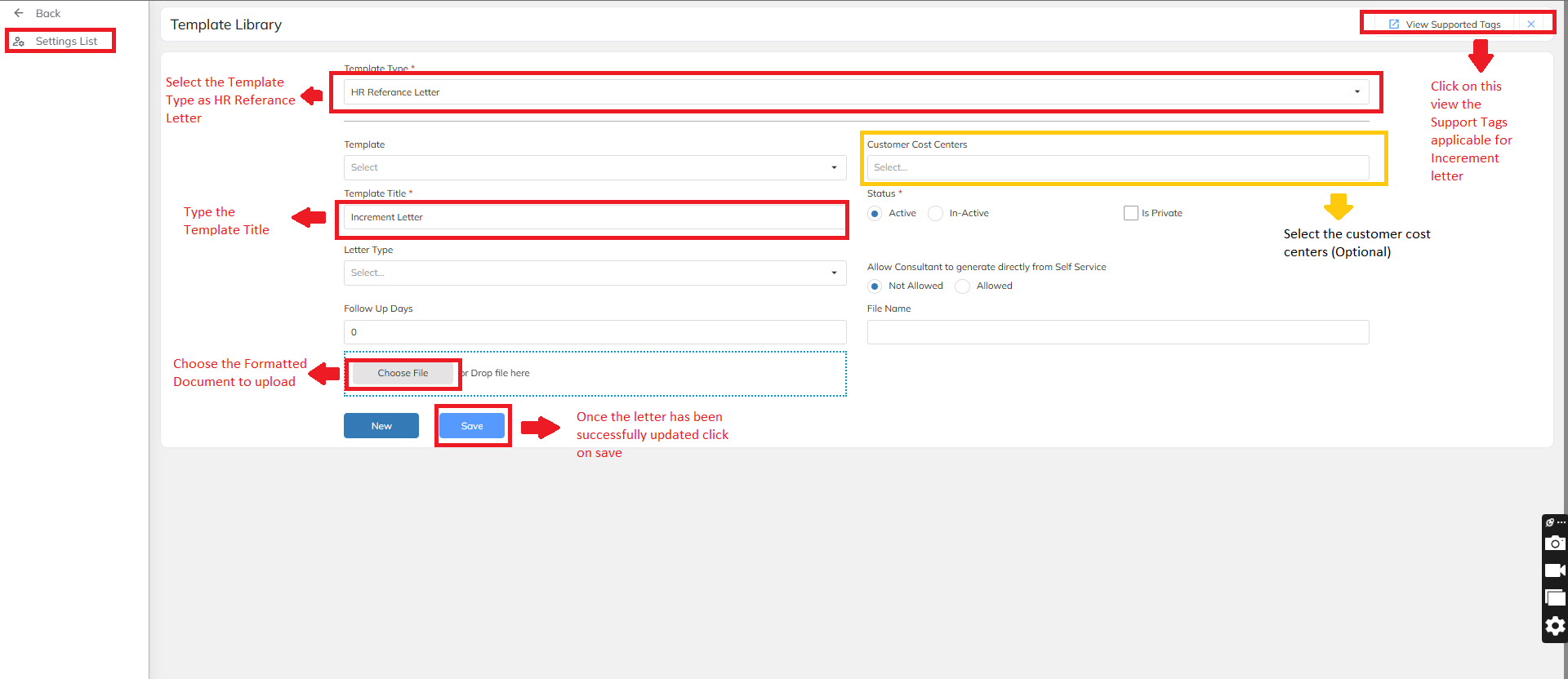 Select the Template Type as HR Reference Letter