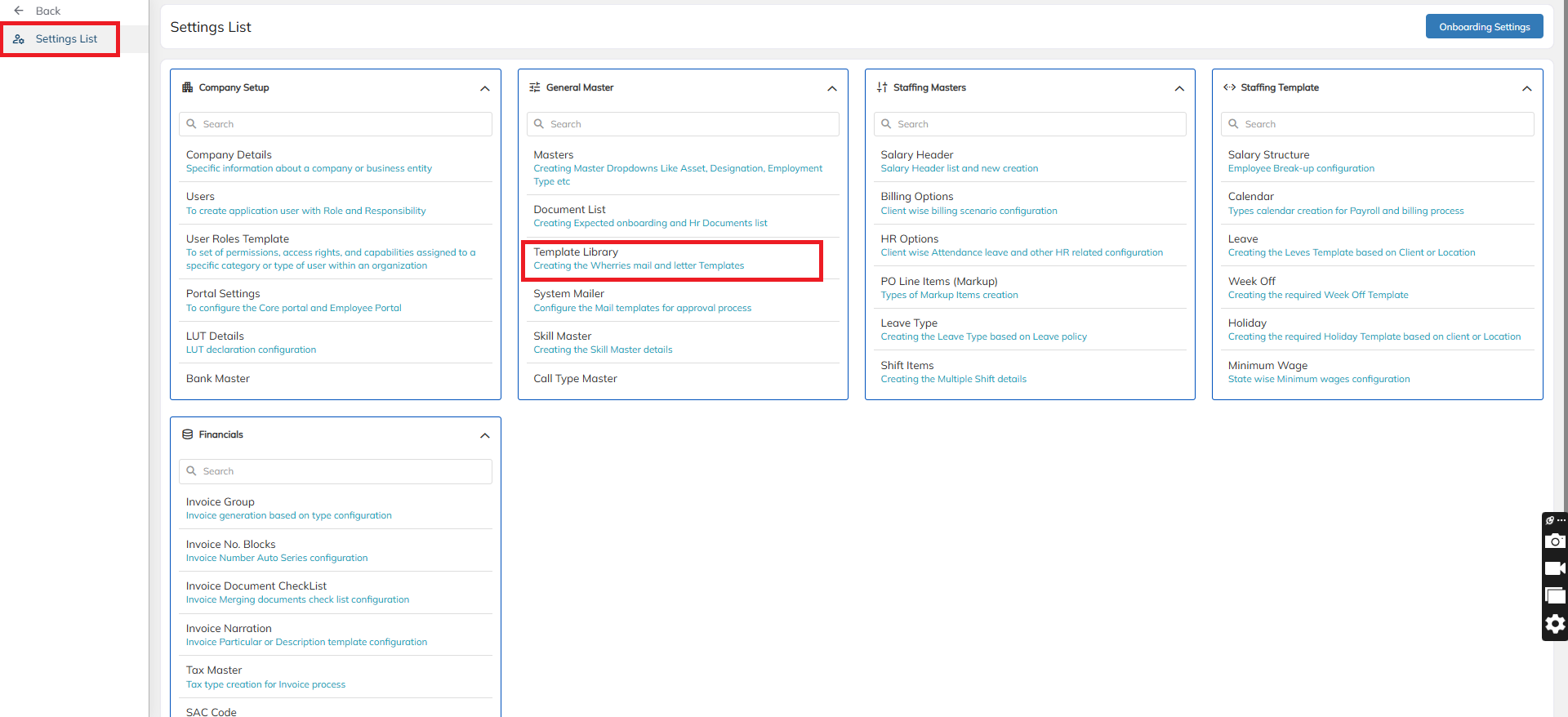- Settings >> General Master >> Template Library