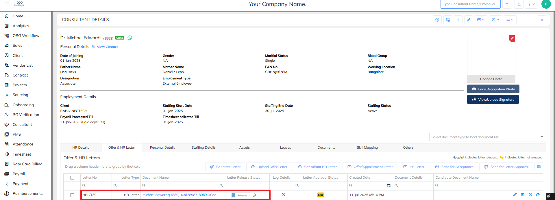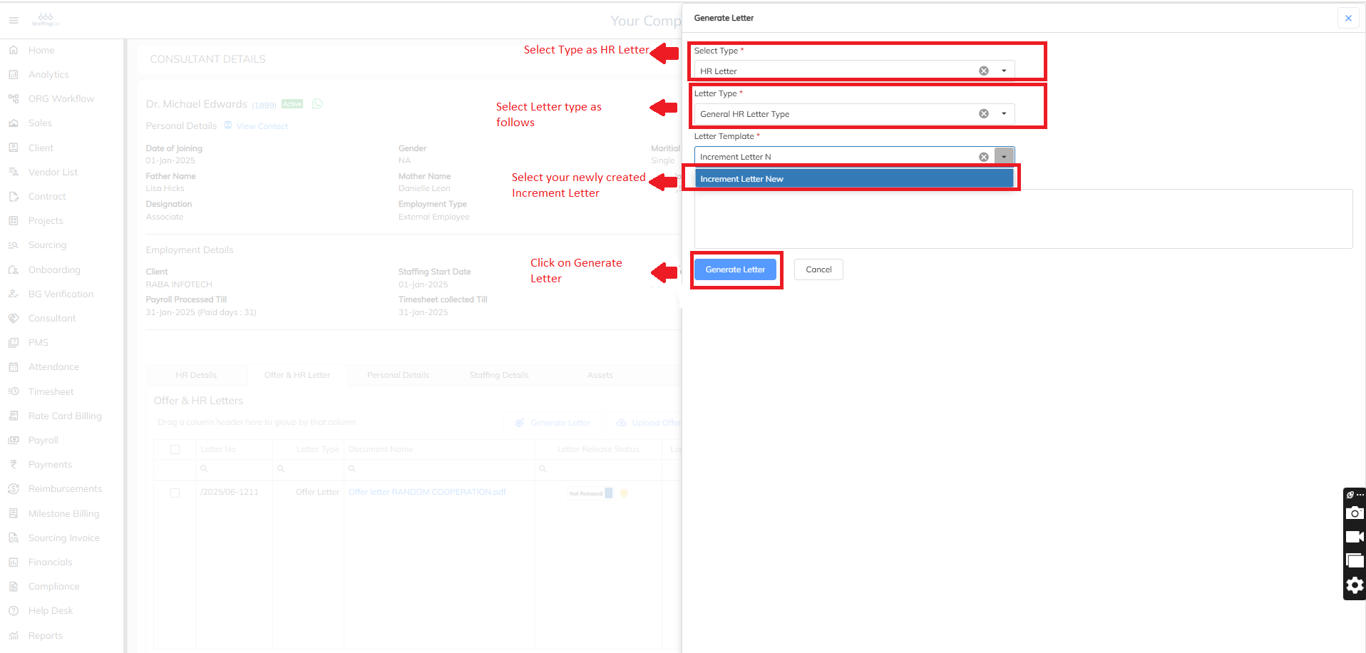 To Generate the Increment Letter at the Consultant/ Employee Level, Below are the steps: