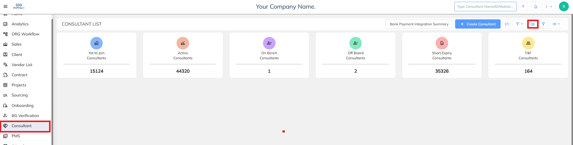 - Click on Consultant Module and Filter the concerned Employee using Filter option available in the consultant dashboard
