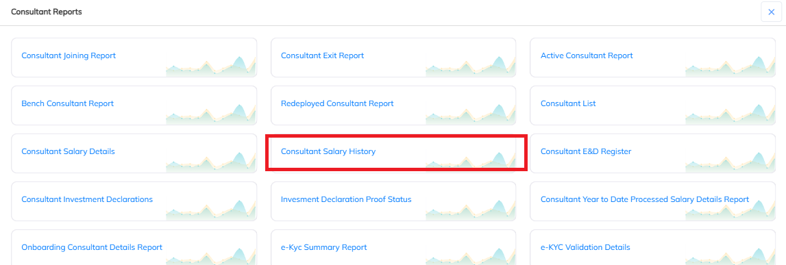 - Navigate to Consultant module --> Chose the Report option --> Select the Consultant Salary history report