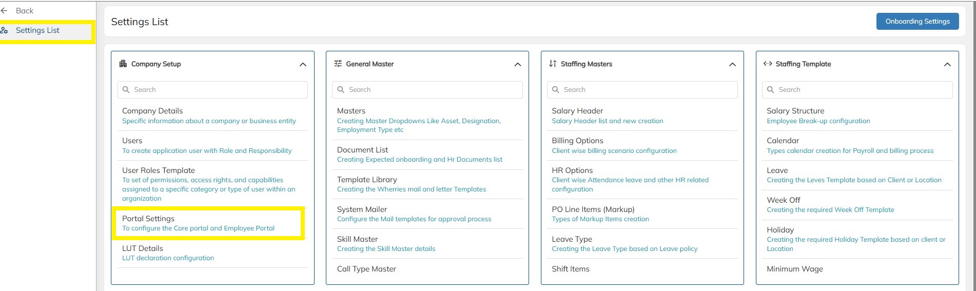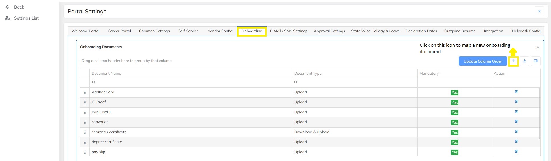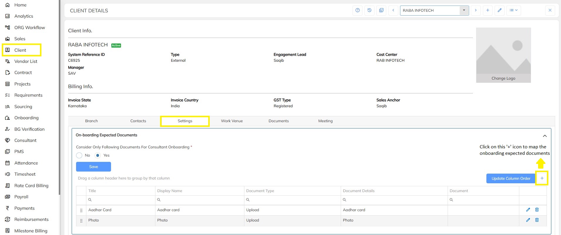 - Click on Onboarding and map the necessary documents which you would like to view in the mandatory onboarding documents in the Consultant section.