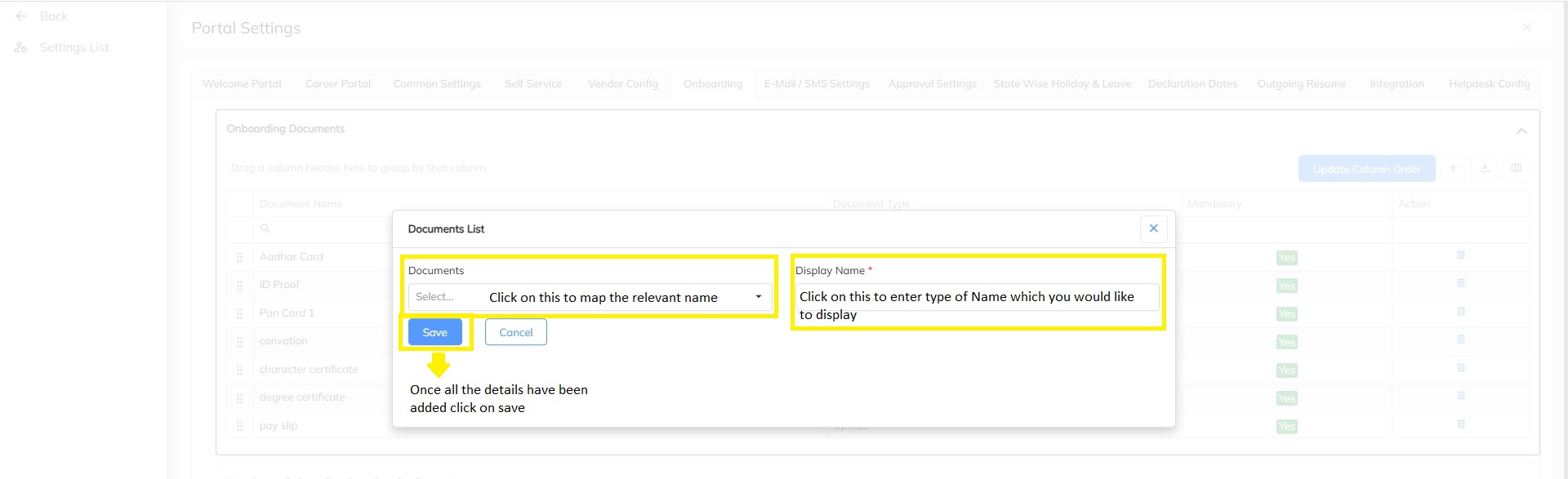 - Display Name: Here the user will enter the relevant document name which will be considered for display