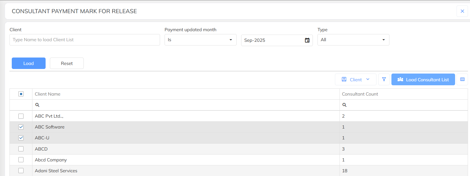 - Select the Client and click on "Loan Consultant List" to Load the Employee List
