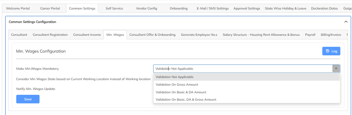 Minimum Wages validation introduced based on Salary Gross as per configuration.