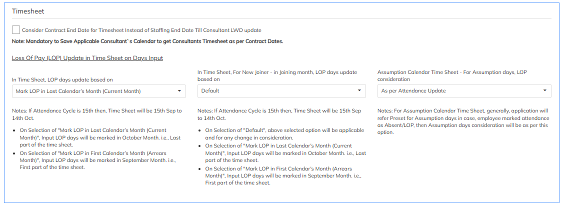 For new joinees in Assumption cycle, option to deduct LOP in arrears month is supported. For regular cases, LOP will continue to calculate in the existing month.