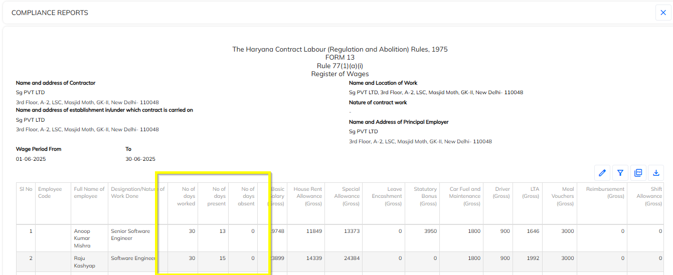 Compliance report enhancement: Wage Register (all states) now supports Number of Days column.