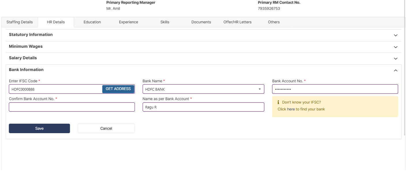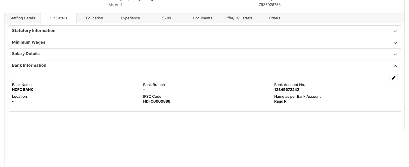 Supported view/edit of Employee Bank Details in client portal, controlled via access rights.