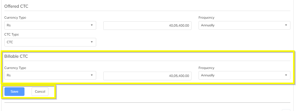 Editing CTC Amount for Sourcing Invoice Employees