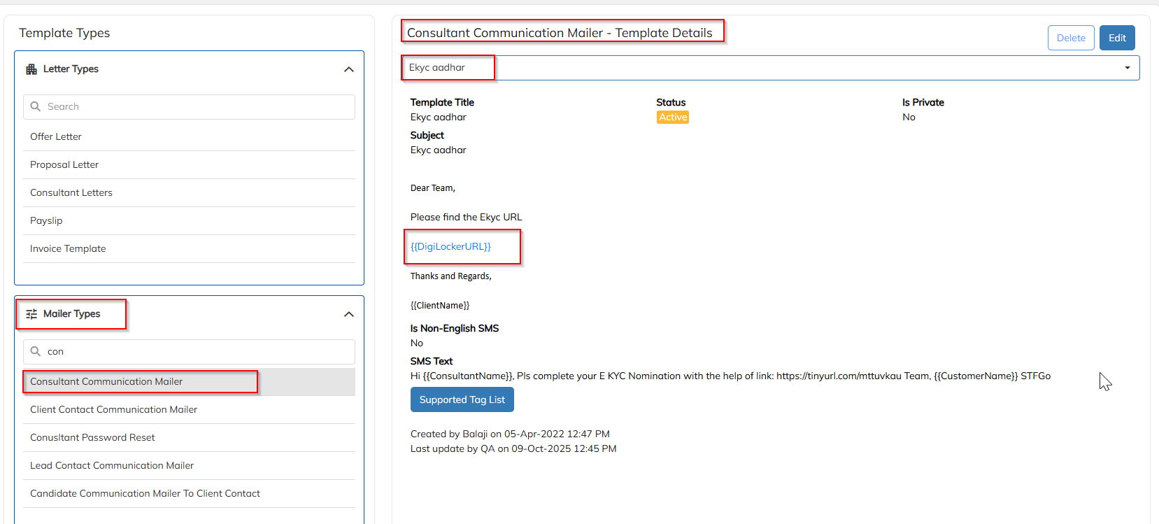 - Ensure that the tag {{DigiLockerURL}} contains the correct URI link setup in the mail body template.