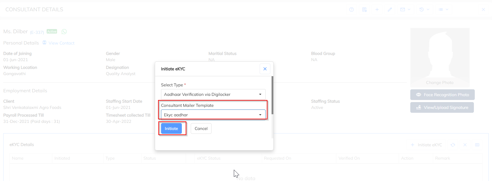 Before initiating eKYC, you must configure the mailer template that sends the verification link to the employee.