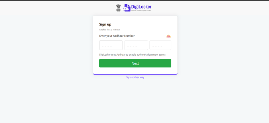 - From the dropdown, choose “Aadhaar Verification via DigiLocker.”