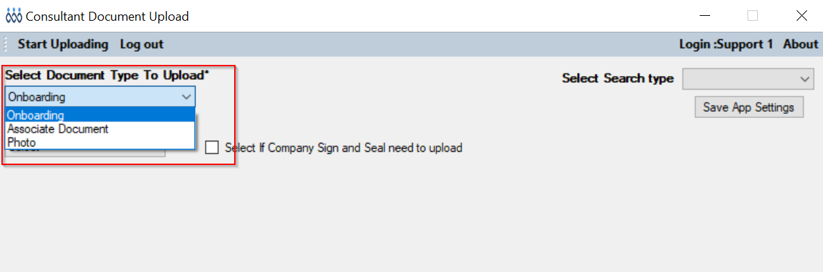 - The selected document type ensures the uploaded files map to the correct document field in the core application.