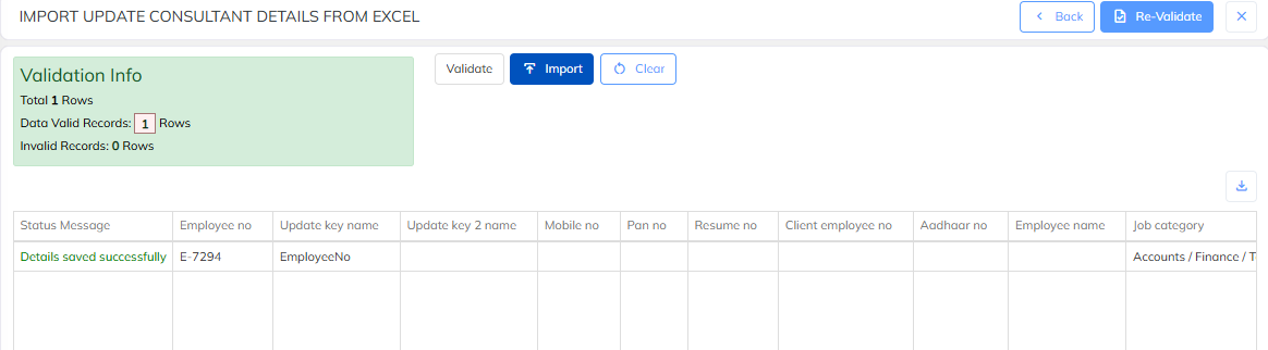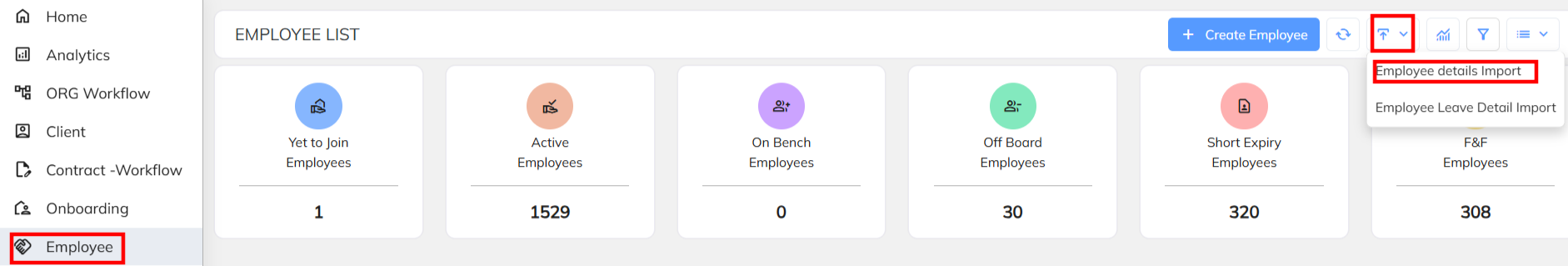 - Navigate to the Import section of the application under consultant module ,Select the Employee details importe option