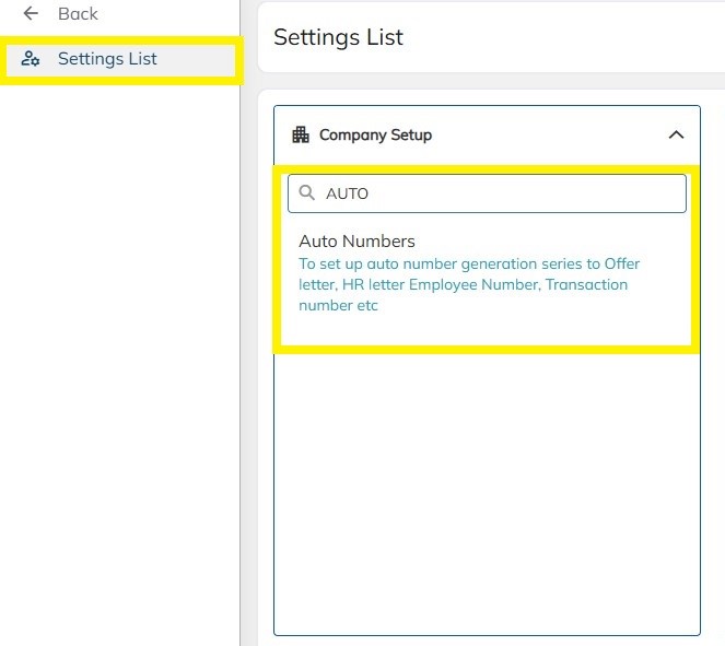 - Navigate to settings -->Company Setup --> Auto Number