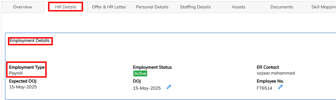 - Employment type need to allocate to employee under Employee HR details >> Employment details >>Employment type before Employee Number generation.