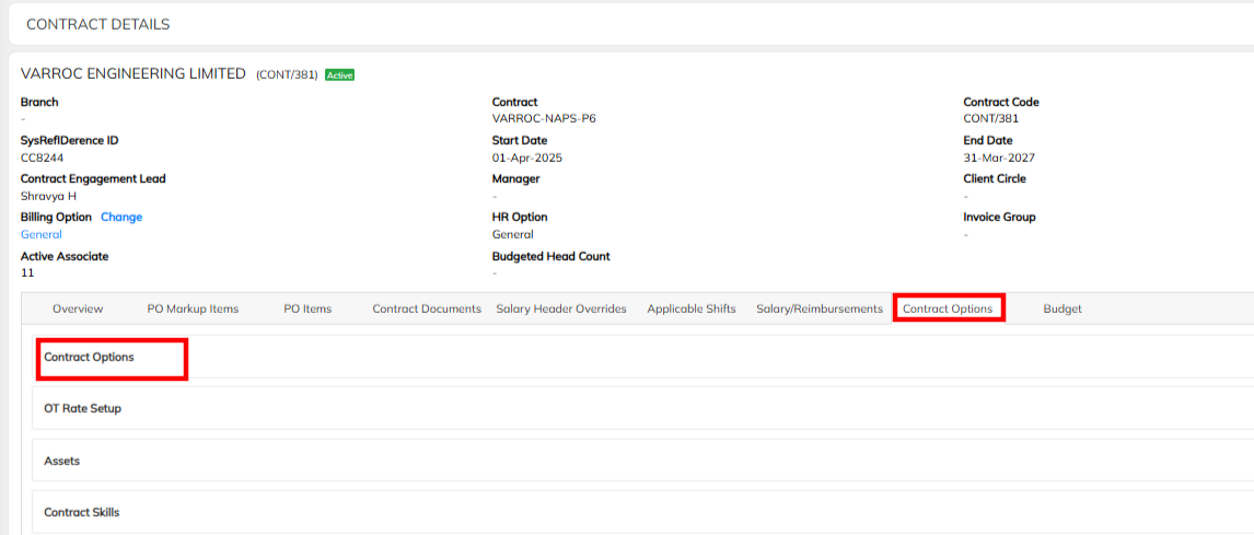 - Navigate to the Contract Module >> Select the specified the client contract >> Navigate to contract profile >>Chose the Contract option which is available under contract profile.