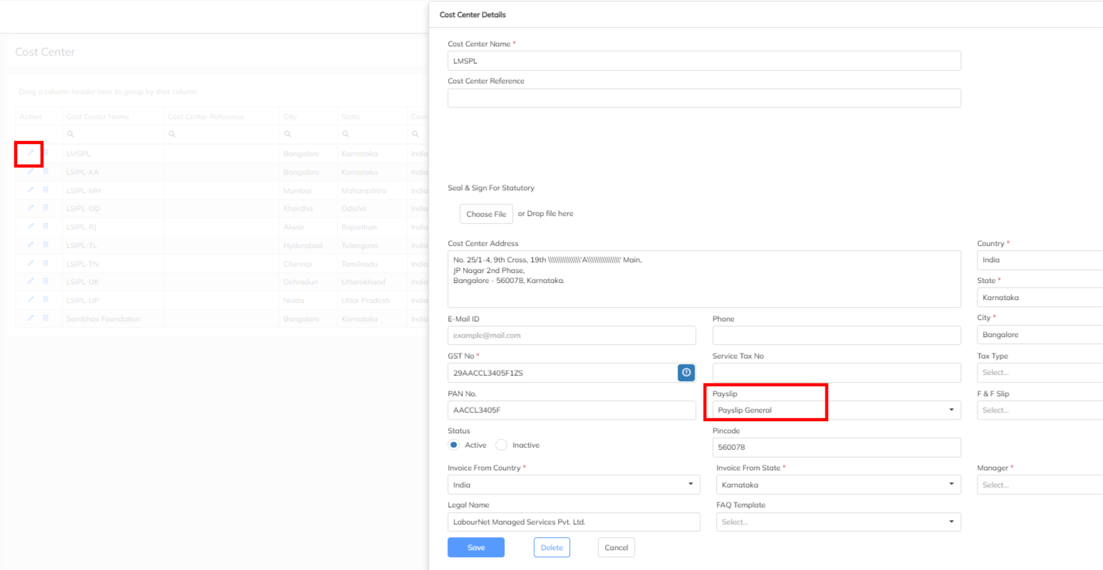 - Cost center Level : Cost center level mapped Payslip will generate.