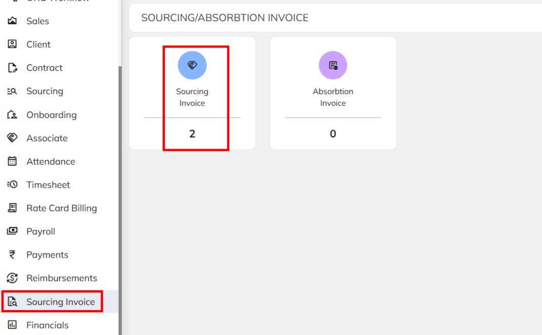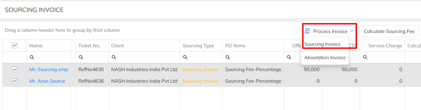 - Navigate to Sourcing Invoice Module >> Select the Sourcing invoice tab >> Sourcing mark up applicable employees will reflect under the same.
