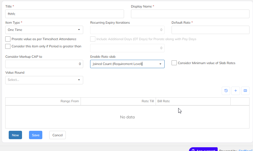 | Default Rate | User can enter either Flat Rate or Percentage as Defaukt rate |