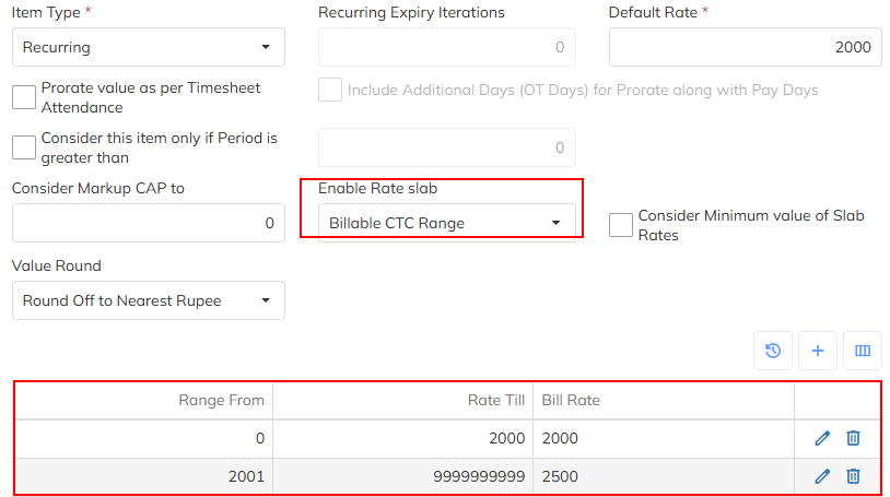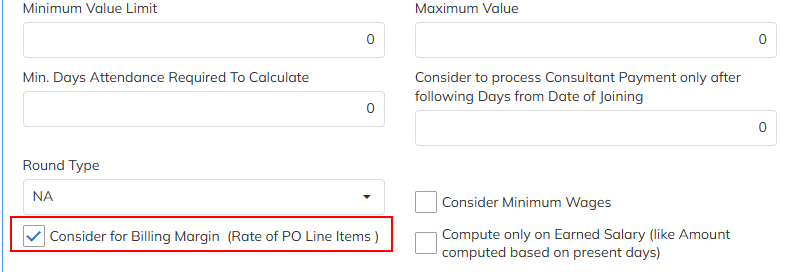 | Prorate value as per Timesheet Attendance | If enabled, markup calculation will be prorated based on attendance (Pay-period) |