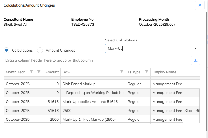 | Fixed Basic | Mark‑up will calculate on Fixed Basic of the employee. |