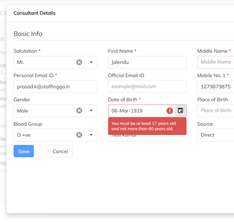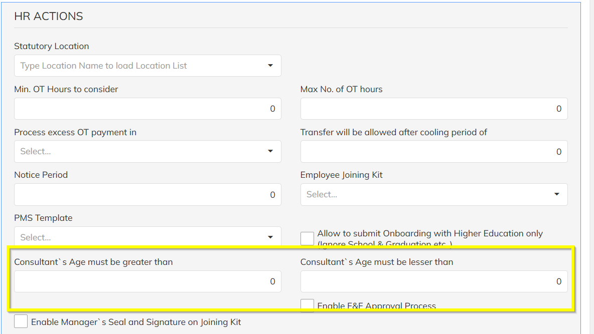 Added client-level(HR Options) configuration for minimum and maximum age limits. The system now validates employee creation based on these settings.