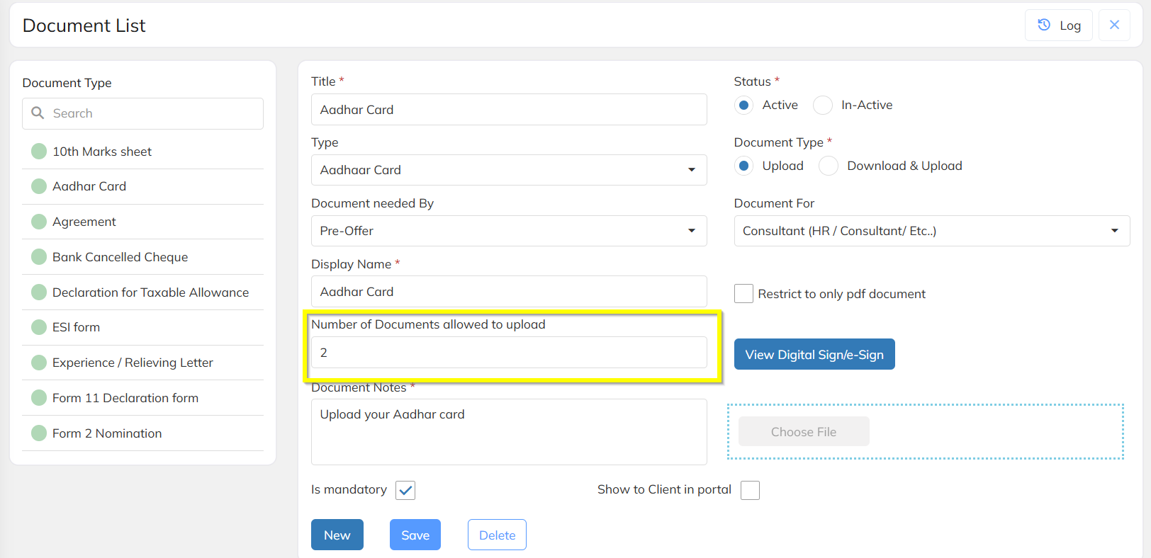 Restriction added to limit the number of document uploads based on document configuration setup.