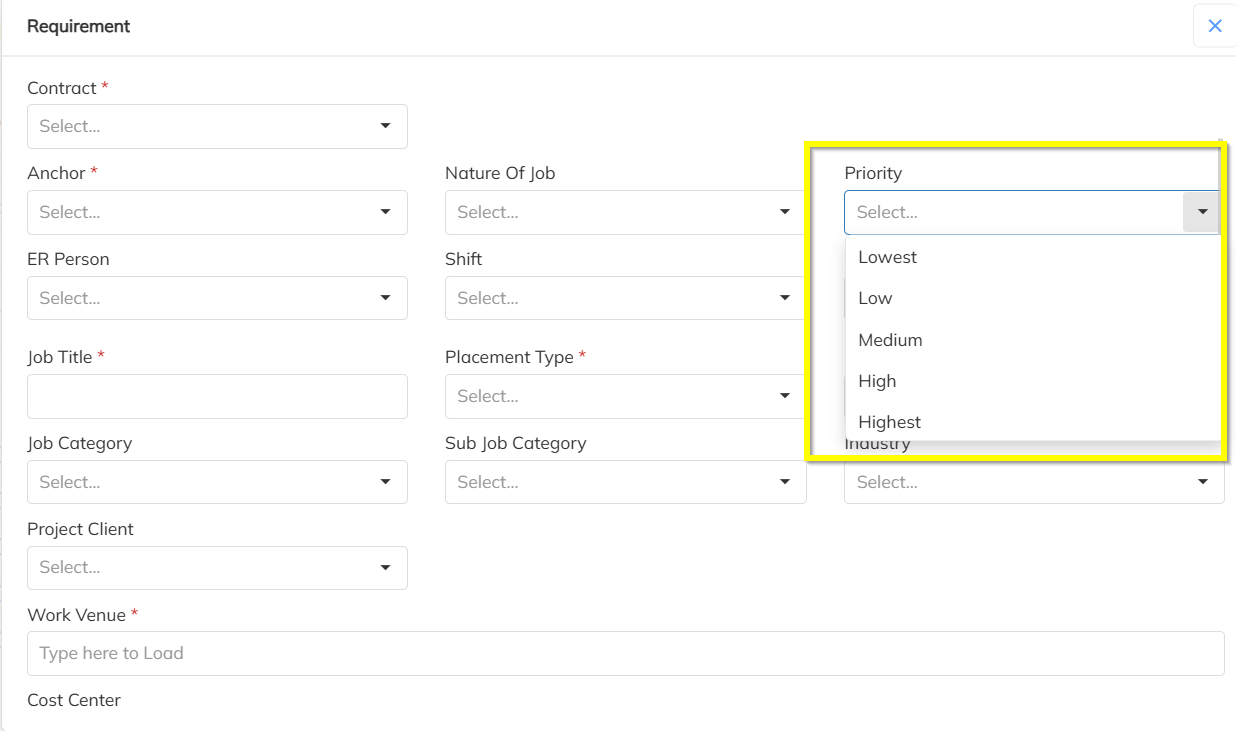 Added “Workvenue ID / Site Name” field under Requirement Master.