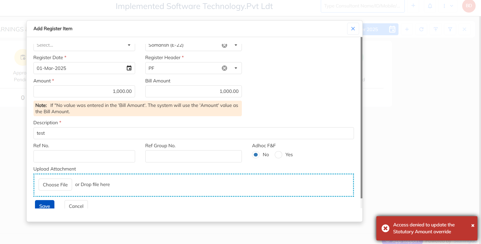 Headers (PT, PF, LWF, ESI) override access now restricted based on user access rights.