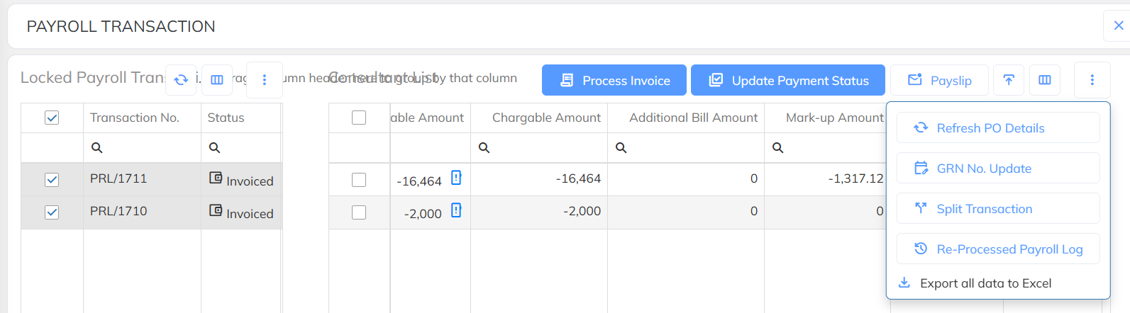 Removed “Process Invoice” and “Generate Payslip” sections from Lock Pending Bucket.