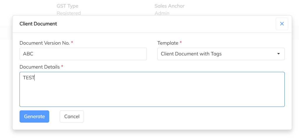 New option added to generate Client Letters based on Template Configuration in master setup.