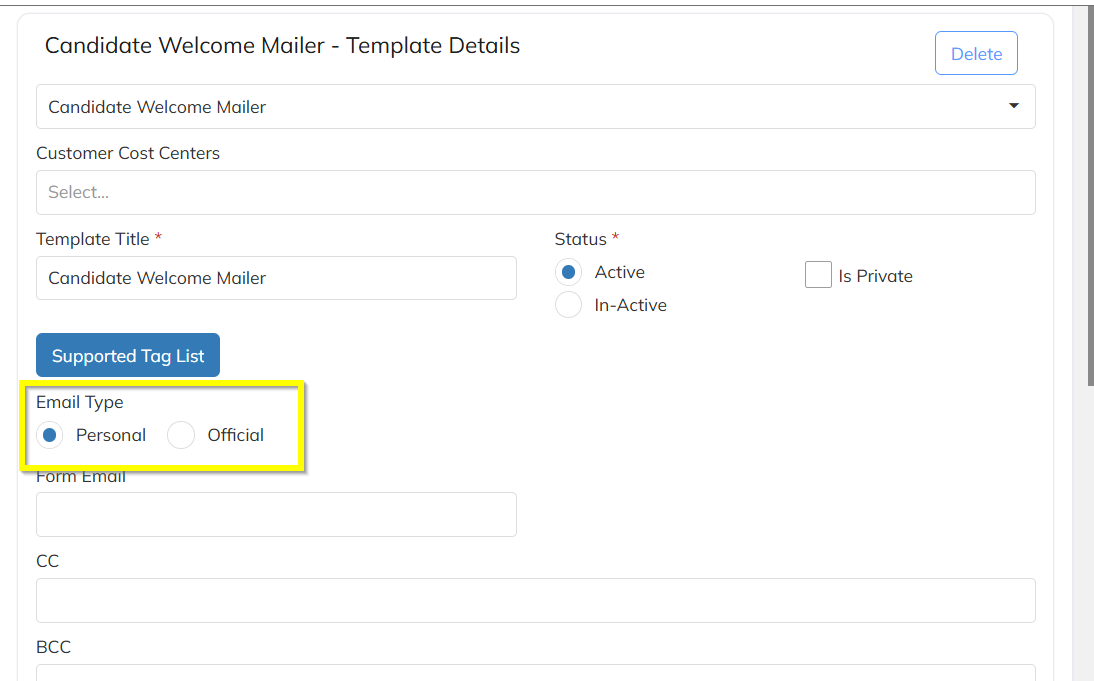 Mail can now be triggered to official or personal employee email based on template-level configuration.