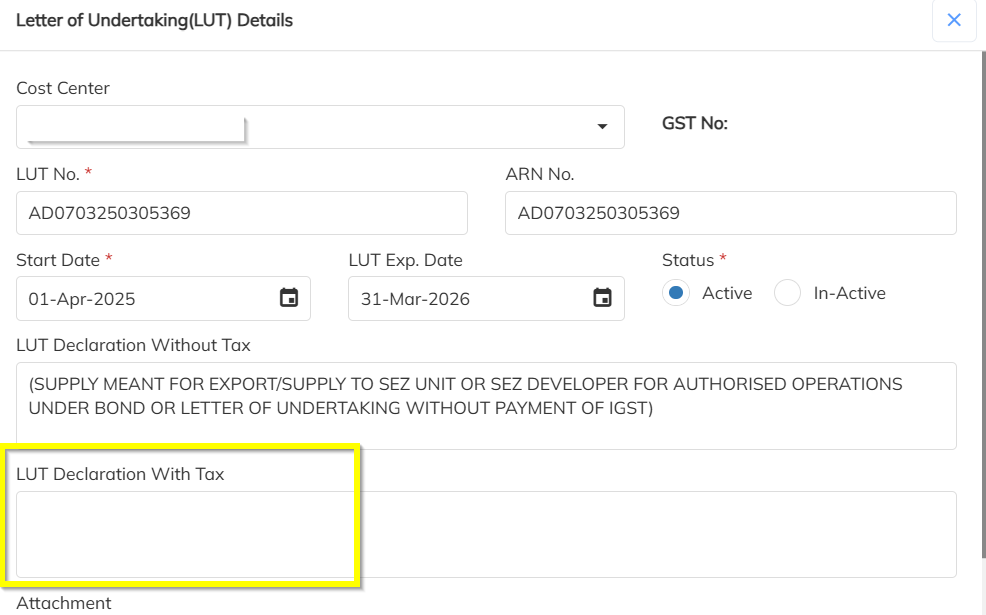 Added provision for SEZ/Export with Payment of Tax Type under LUT declaration.
