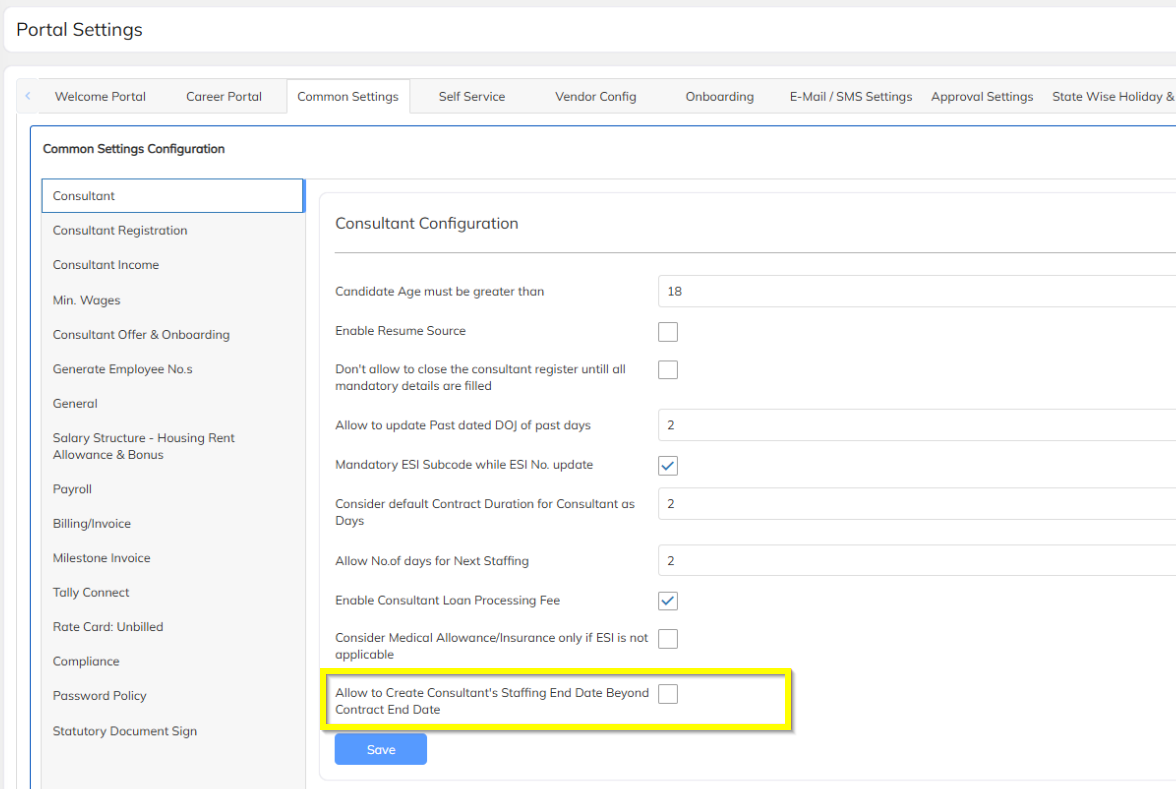 Added configuration – “Allow to Create Employee’s Staffing End Date Beyond Contract End Date”.
