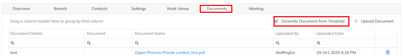 - Select the Letter template and generate . Generated Letter can download and same as available in the application with all time.