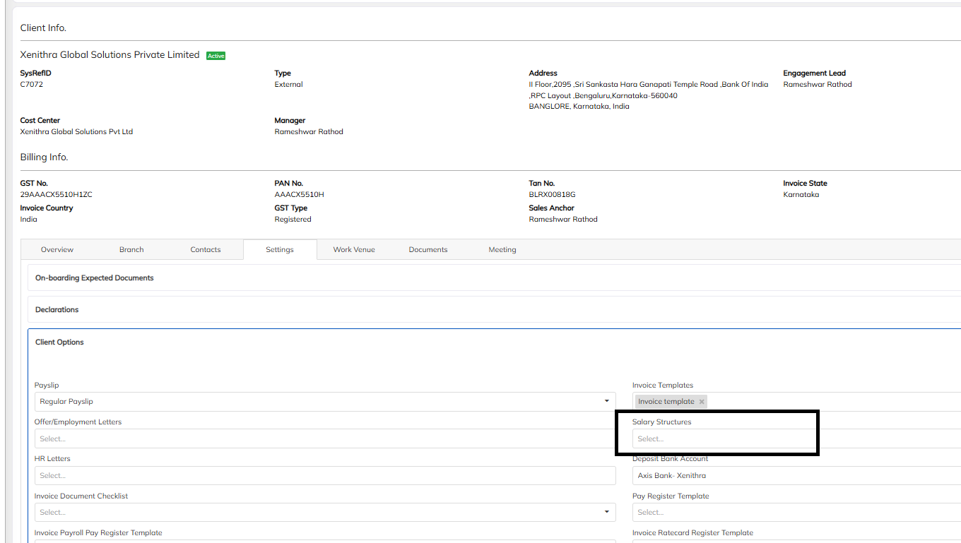 - Select the Setting option >> navigate to Client Option >>Map the client specified Salary structure and save. we can able to map the multiple salary structure in the same.