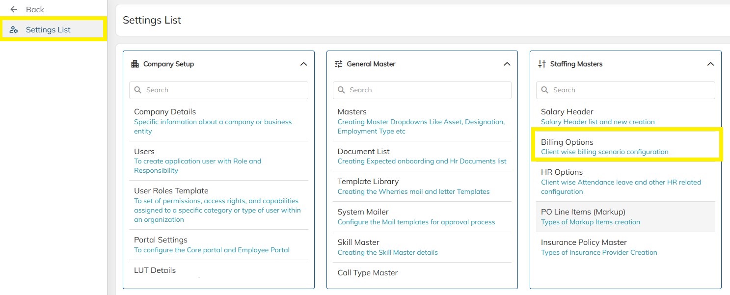 Once the OT rate setup has been done, we have to enable the OT applicability at the Billing Options and at the Contract level with respect to the Salary Headers