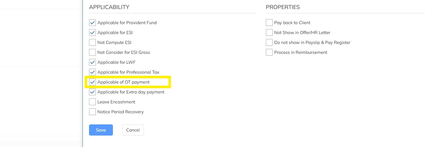 - Need to be ensured that for all the Salary headers are mapped with OT Applicable Checkbox