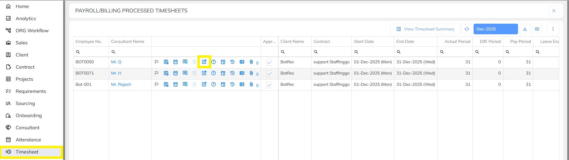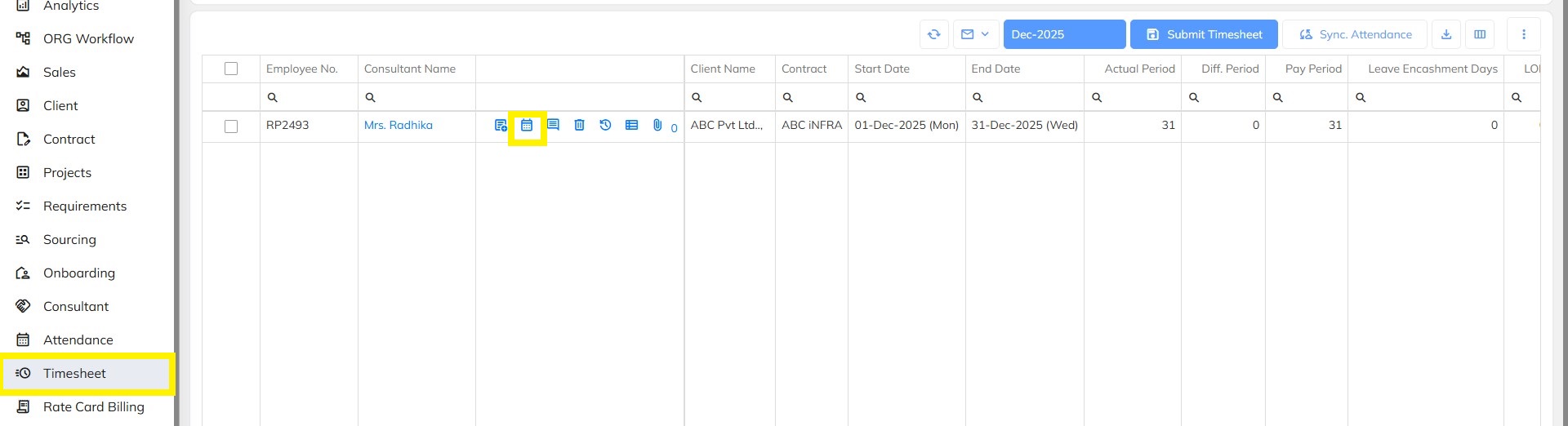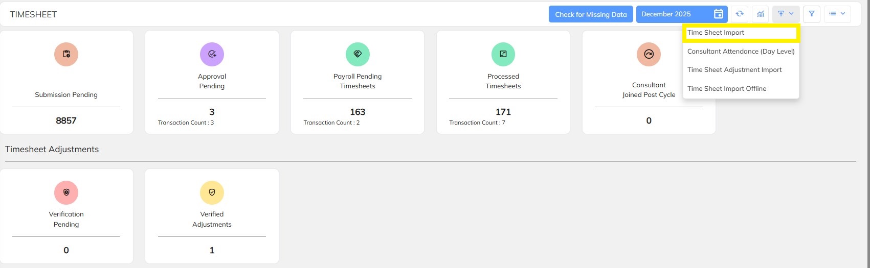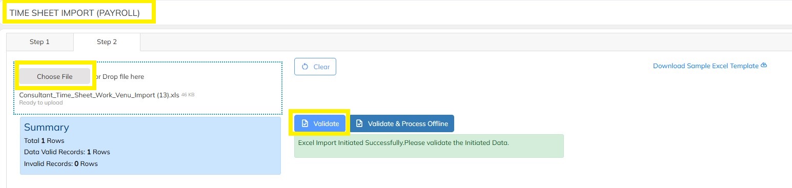 - Navigate on Import icon --> Timesheet Import --> Download the Sample template