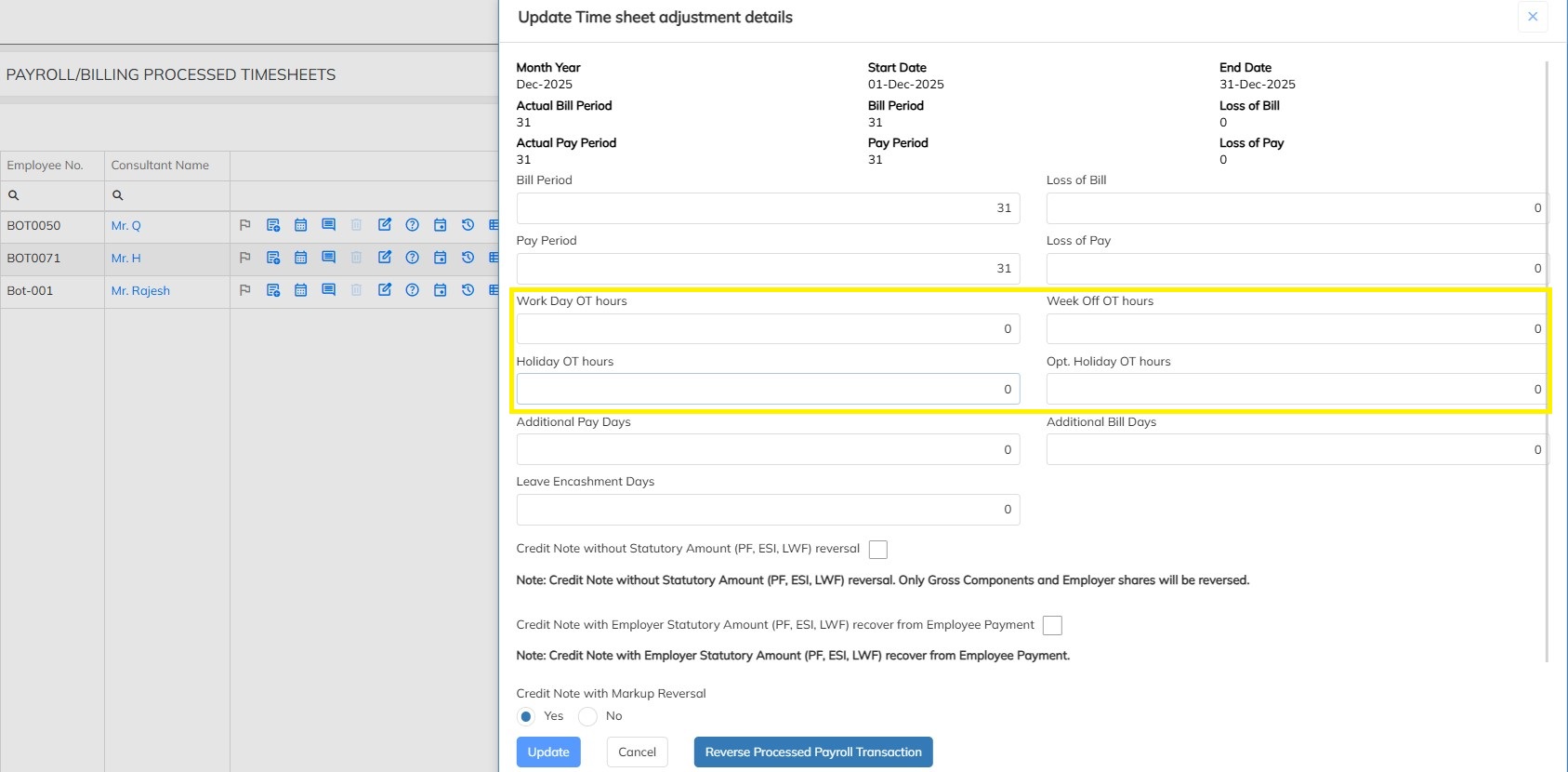 UPDATING OT HOURS IN TIMESHEET ADJUSTMENT (MANUAL)