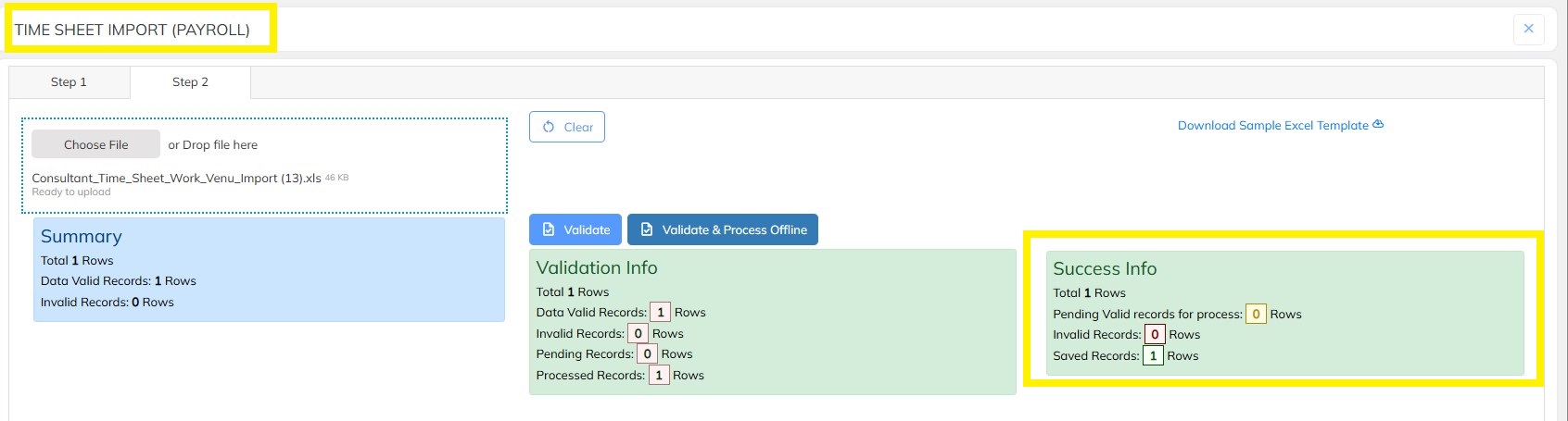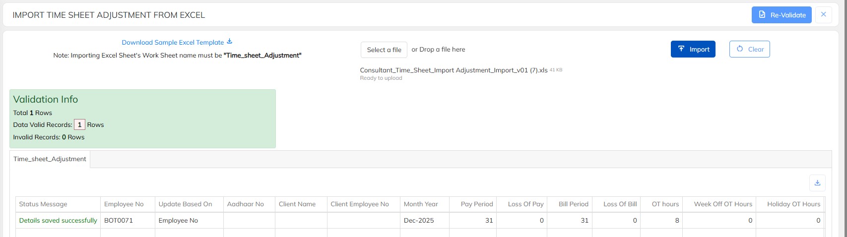 - Once Validated --> Click on Import to Import the timesheet details successfully.